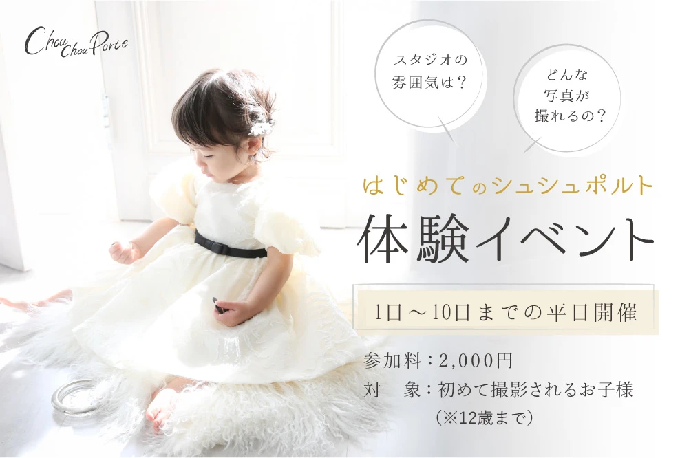 シュシュポルトをご利用したことのないご家族様限定で、特別価格でスタジオ撮影を試せる【体験イベント】開催!