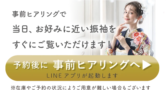 ご来店前にLINEで【振袖事前ヒアリング】にご回答いただけますと、当日スムーズに振袖をご覧いただけます。